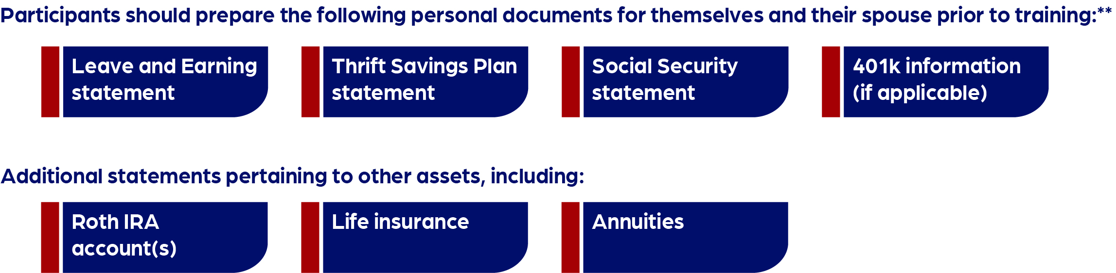 Training sessions are open to early-career, mid-career, and pre-retirement federal employees, including special provision employees such as Law Enforcement Officers, Firefighters, Air Traffic Controllers, and Dual-Status Military Reservists. Spouses are also welcome to attend.